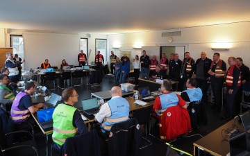 2. Februar. – Ein Hochwasser, wie es der Main-Kinzig-Kreis noch nie erlebt hat: Mit diesem Szenario haben sich der Verwaltungsstab und der Katastrophenschutz-Stab des Kreises beschäftigt. Über zwei Tage hinweg setzten sich rund 100 Beschäftigte, Ehrenamtliche und externe Übungsbeobachter gedanklich mit einer solchen Katastrophenlage auseinander. Das Ziel war es, interne Abläufe zu überprüfen und die Zusammenarbeit der Stäbe weiter zu stärken. Schon in den Monaten zuvor wurde das Stabspersonal im Main-Kinzig-Forum in unterschiedlicher Zusammensetzung geschult und auf Ernstfälle vorbereitet.